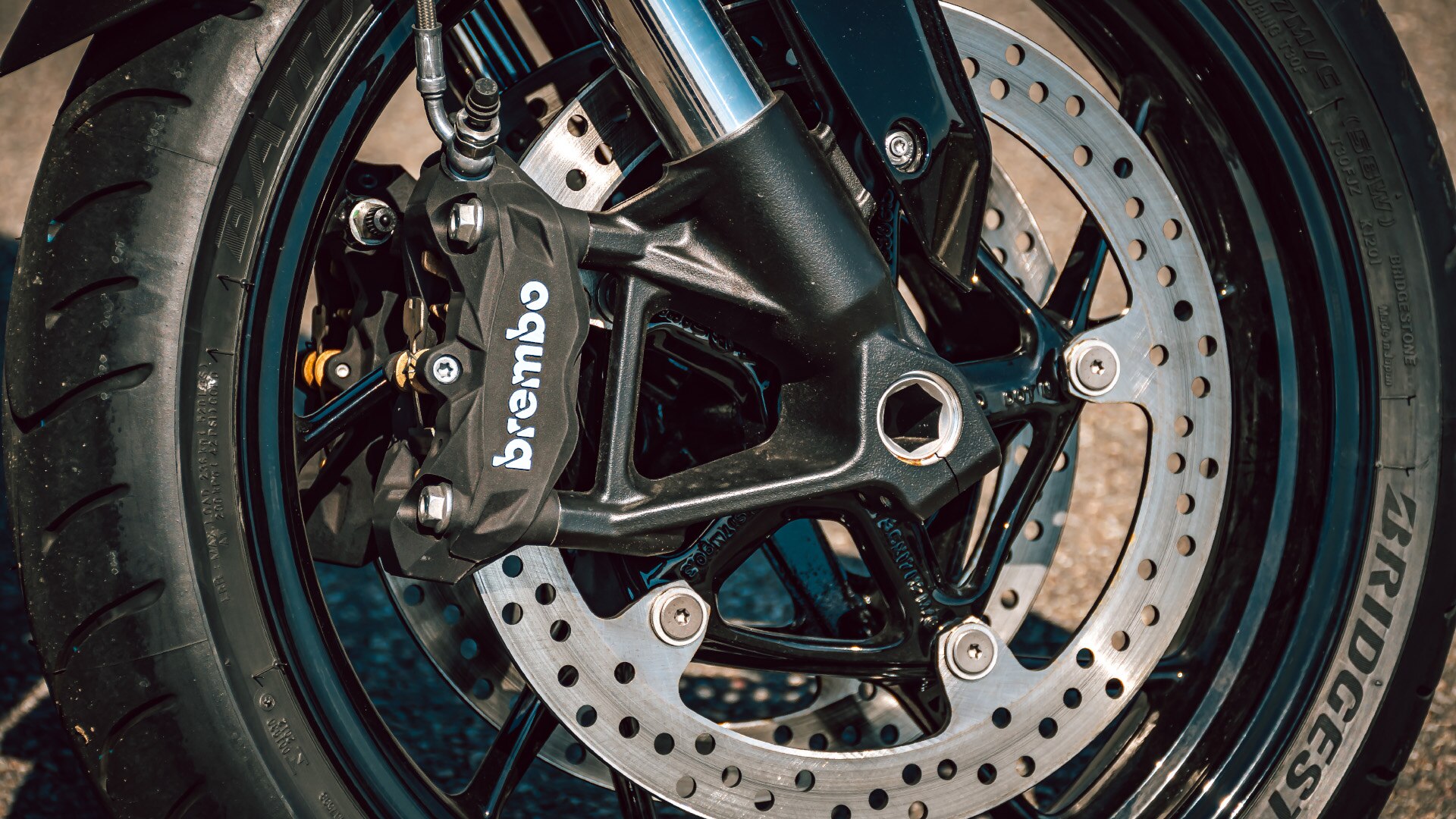 Fahrwerkstechnisch ist der Kurvenräuber bestens aufgestellt. Vorn nimmt es die Upside-Down Federgabel mit jeder Fahrbahnunebenheit auf und hinten schwebt man auf Wolke 7 aufgrund des zentralen Federbeins, welches durch individuelles Einstellen jeder Herausforderung standhält. Das standardmäßige ABS und der 180er Hinterreifen vermitteln Stabilität und Grip in jeder Schräglage. Die BMW ist auch bei der Thematik Bremsen hervorragend aufgebaut. Am Vorderrad sorgt eine Doppelscheibenbremse mit 4-Kolben-Bremssattel für maximale Verzögerung, hinten rundet eine Einscheibenbremse mit 1-Kolben-Bremssattel das gesamte Bremskonzept ab.