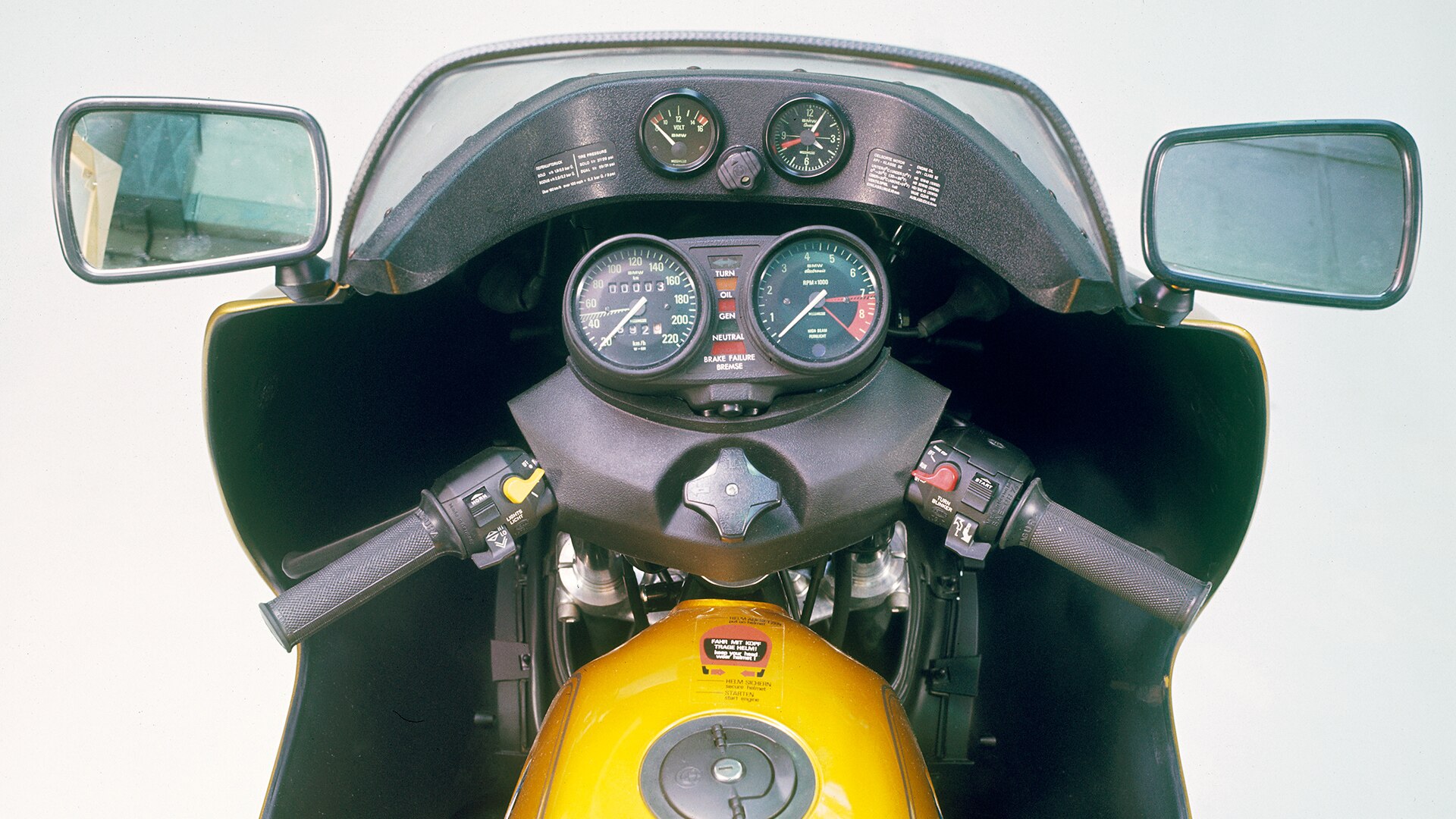 Mit der R 100 RS präsentiert BMW Motorrad das erste Serienmotorrad mit einer im Windkanal entwickelten Vollverkleidung. Hierbei standen neben aerodynamischen Überlegungen auch der Schutz des Fahrers vor Wind und Wetter im Vordergrund der Entwicklung. Zusätzlich ist die R 100 RS die erste BMW mit einem Liter Hubraum. Mit 200 km/h ist das Motorrad auch in der Disziplin Höchstgeschwindigkeit ganz vorne – im Gegensatz zur Konkurrenz kann der Fahrer jedoch ganz entspannt hinter der Verkleidung aufrecht sitzen. Mit diesem Modell begründet BMW die Klasse der sportlichen Reisetourer.