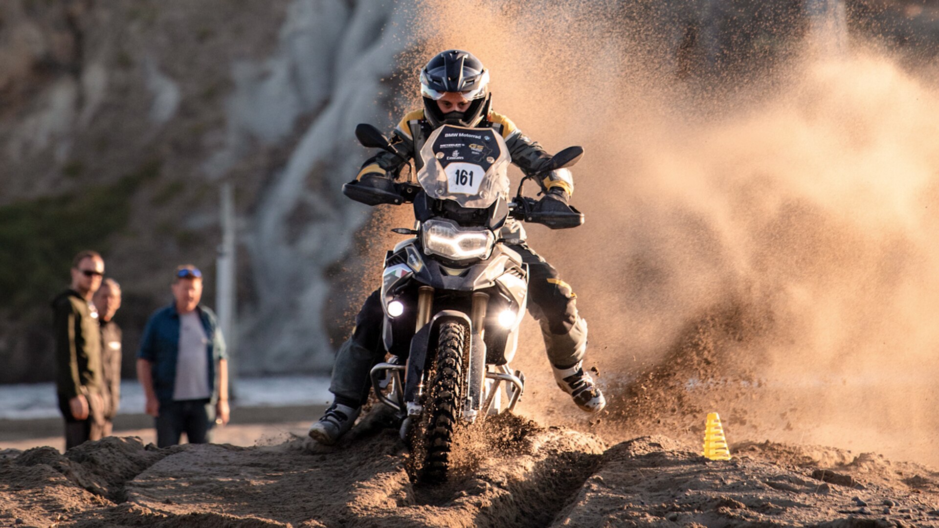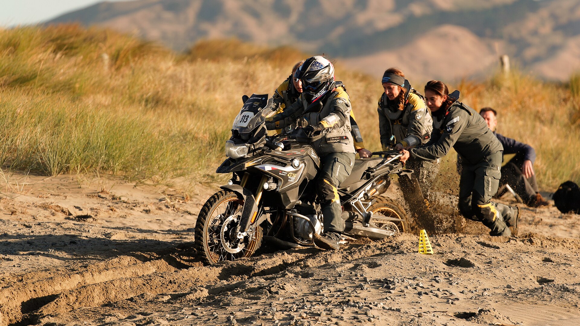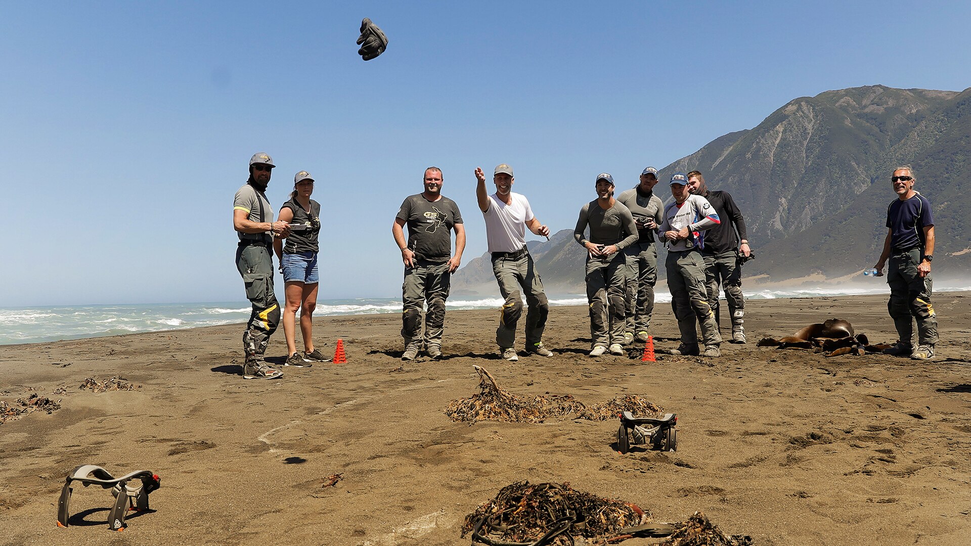 Die zweite Aufgabe des Tages, die „Leatt Challenge”, fand in der Nähe des südlichsten Punkts der Nordinsel statt – dort, wo die Wellen des Südlichen Ozeans kraftvoll anrollen, bevor sie am zerklüfteten White Rock zerschellen. Dieses Mal war nicht das perfekte Beherrschen der Bikes offroad gefragt, sondern wortwörtlich Fingerspitzengefühl: Die Herausforderung bestand darin, mit den Motorradhandschuhen ein Ziel möglichst genau zu treffen. Danach fuhren die Teams durch traumhafte Landschaften zurück ins Camp Wainui – jedoch nicht zum Entspannen: Auf die Teams wartete hier ein weiterer anspruchsvoller Parcours im Wettrennen gegen die Zeit.