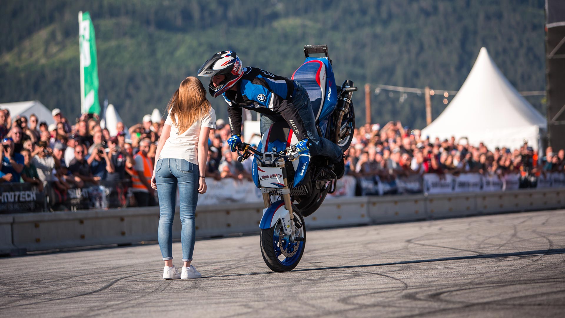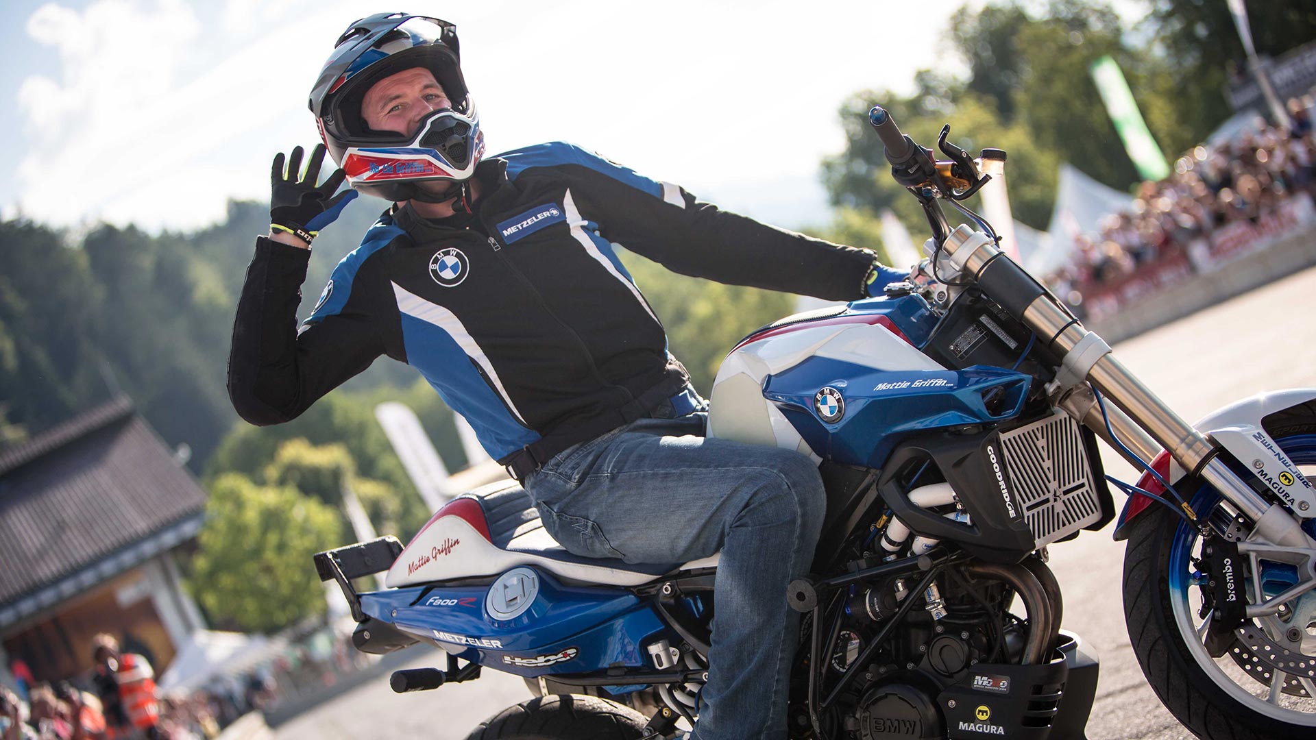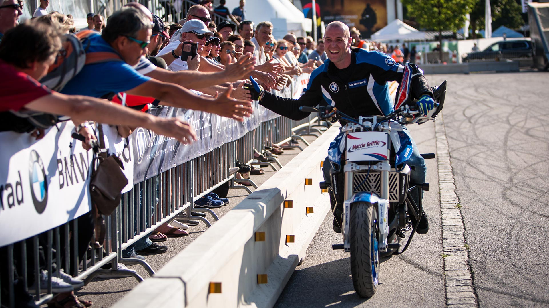 Seit der Ire Mattie Griffin mit seinen waghalsigen Stunts in der Szene auftauchte, begeistert er Publikum auf der ganzen Welt mit seinem einzigartigen Streetbike Freestyle auf seinen umgebauten, speziell angefertigten BMW F 800 R Bikes. Er kehrt immer wieder gerne nach Garmisch-Partenkirchen zurück und performt vor großem Publikum. In diesem Jahr hatte er das ganze Wochenende ein extra breites Lächeln auf den Lippen, da er einige seiner alten Lieblingstricks vorführte und natürlich auch ein paar neue. Mattie ist von jeher ein Pionier und spielt noch immer ganz vorn mit.