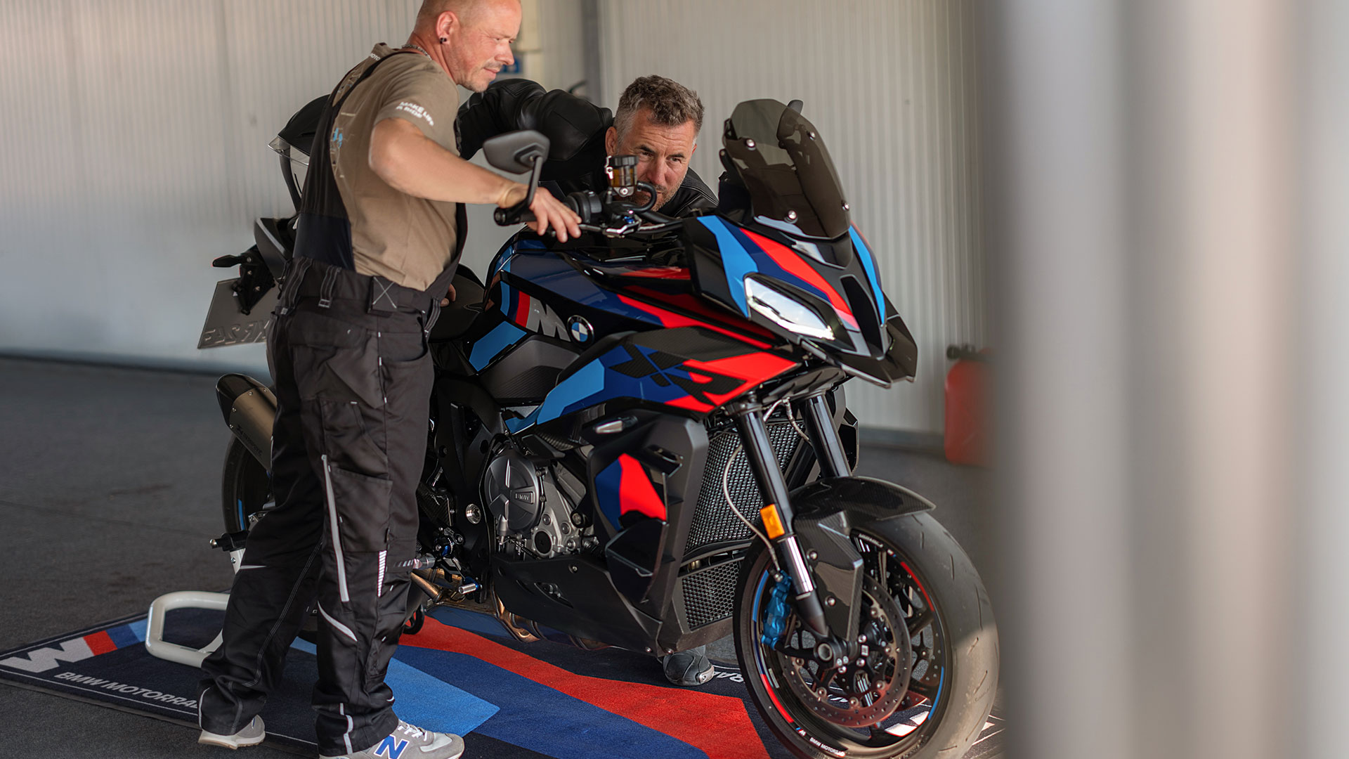Bereit? Nimm Platz, starte den Motor und tauche ein in die M Welt. Hinter Dir: das schlanke, performanceorientierte Heck mit kurzem Kennzeichenträger. Danach kommt lange nichts. Du führst. Du hörst den unvergleichlichen Sound, der aus dem steilgestellten Akrapovič Slip-on- Endschalldämpfer kommt. Auch Dein Sozius hat dank schlanker Haltegriffe und Soziusfußrastenausleger die volle M Experience.